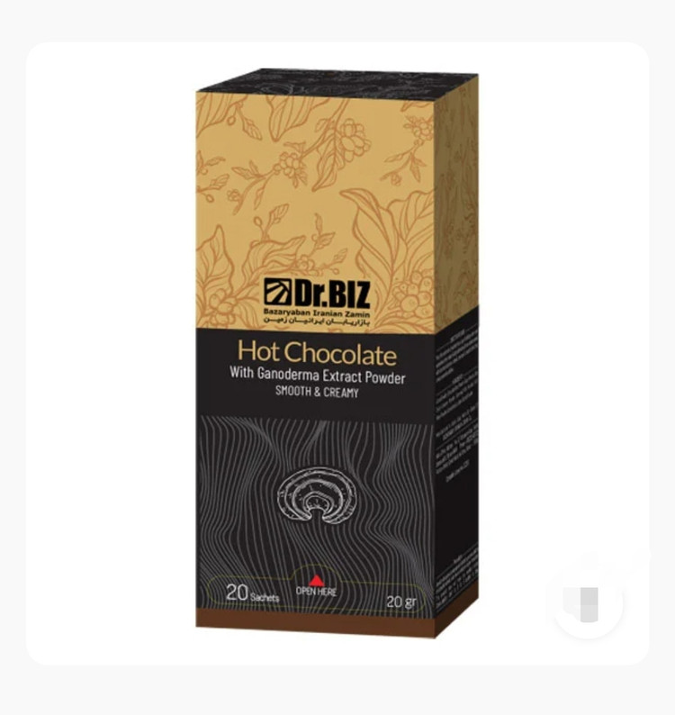 هات چاکلت گانودرما دکتر بیز یا شکلات داغ گانودرما ترکیب، کاکائو و عصاره قارچ گانودرما لوسیدوم است.